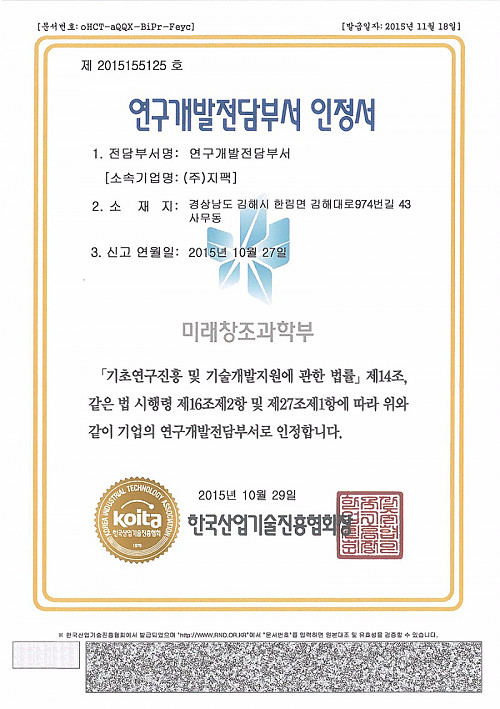 연구개발전담부서 인정서